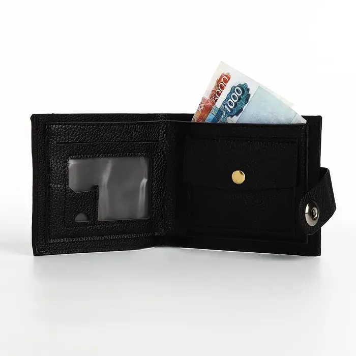 - Три отделения для чёткого разделения наличных, монет и пластиковых карт