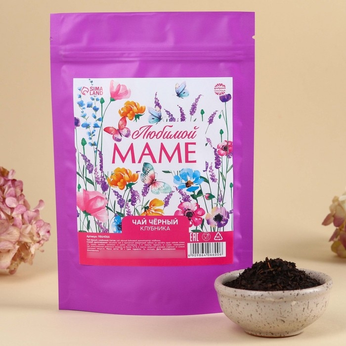 Чай чёрный «Любимой маме» вкус: клубника, 50 г.