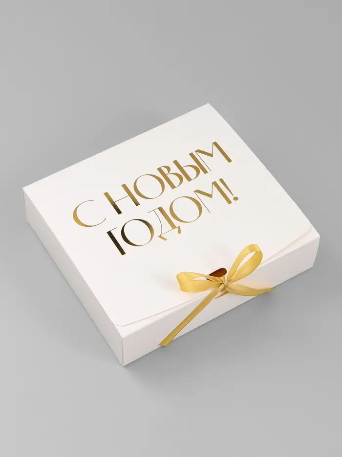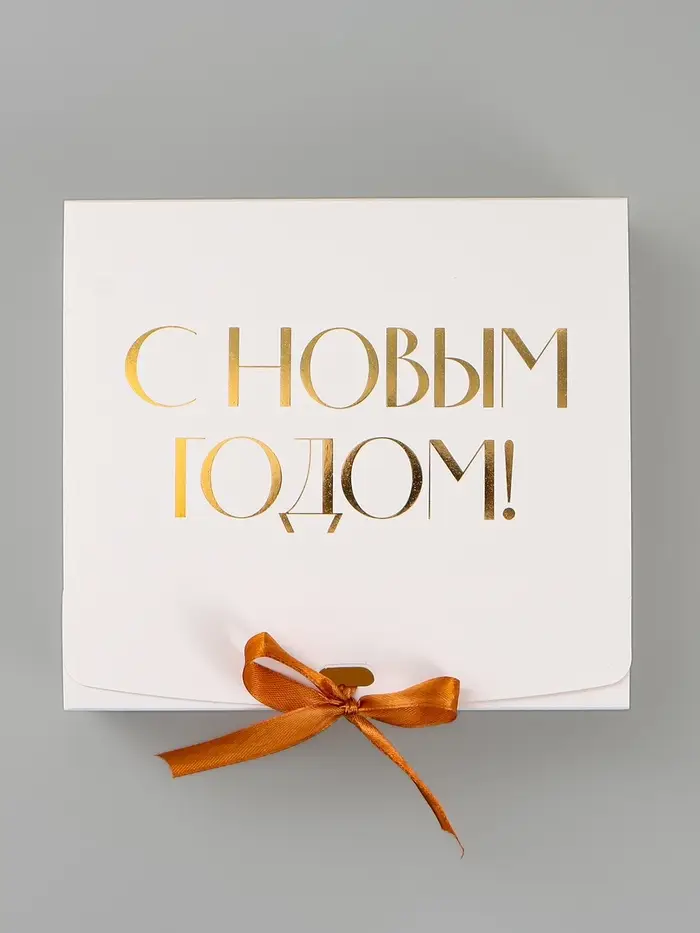 Коробка подарочная новогодняя складная «С Новым годом, тиснение, белый», 20×18×5 см