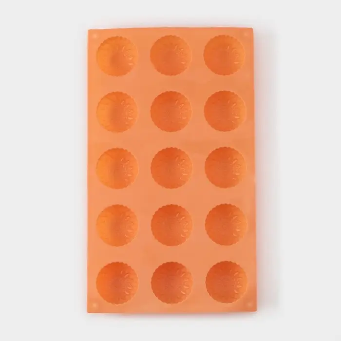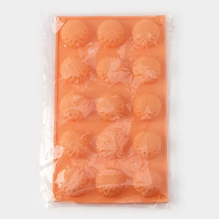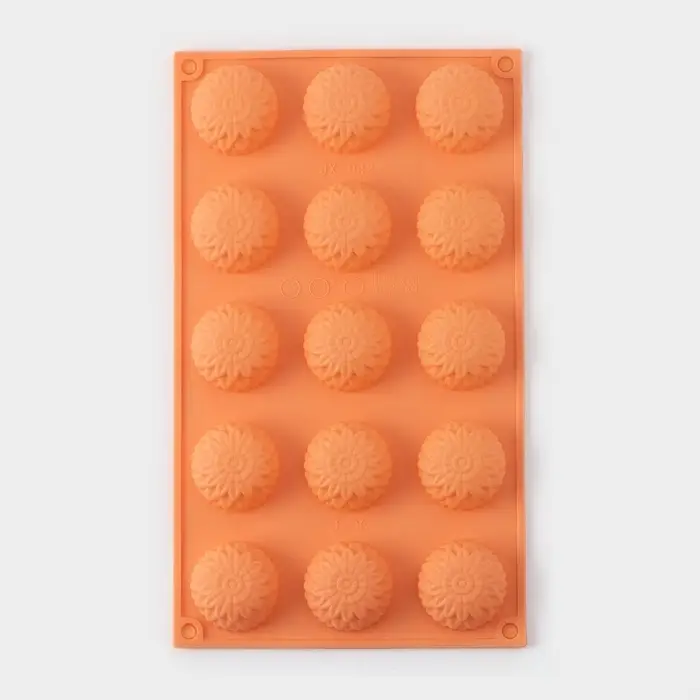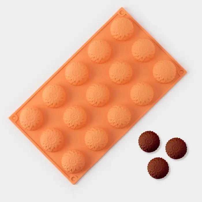 Форма для конфет и шоколада «Цветы. Хризантема», силикон, 29×17×2 см, 15 ячеек, персиковая