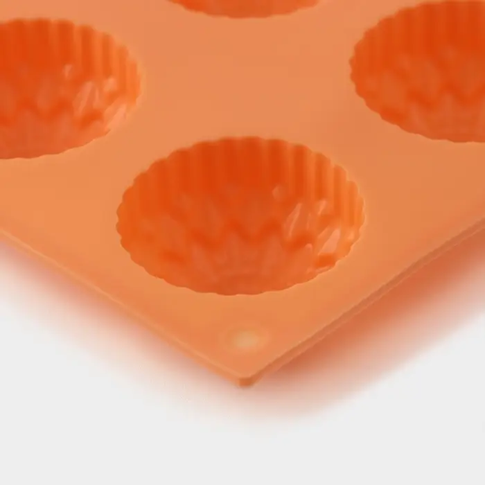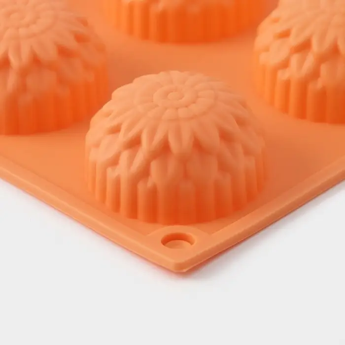 - Изготовлена из пищевого силикона персиково-оранжевого оттенка — мягкая, гибкая, легко отдаёт тонкие лепестки без повреждений.