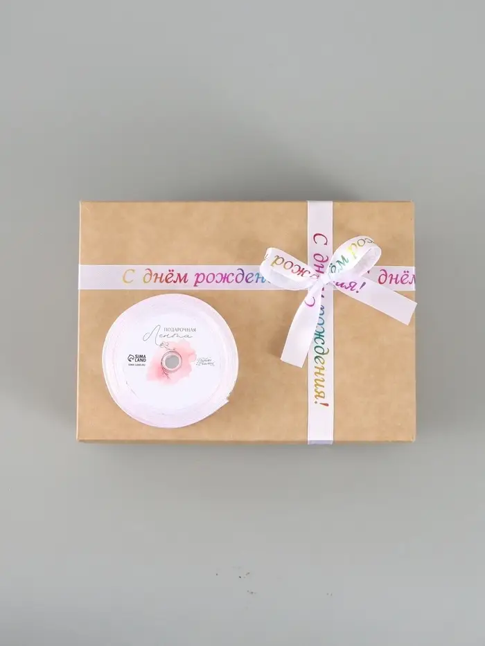 Лента атласная «С Днём рождения», 15 мм, 18±1 м, белая