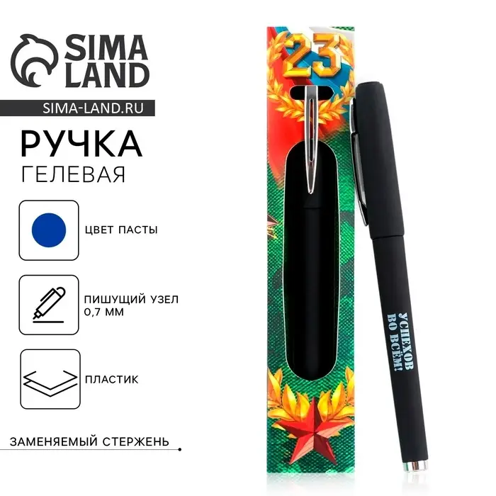 Ручка гелевая пластик, синяя паста «С днём защитника отечества. 23 февраля»