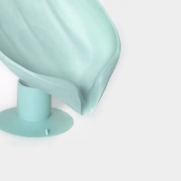Мыльница со сливом для воды Доляна, на присоске, 12.5×9×10 см, бирюзовая