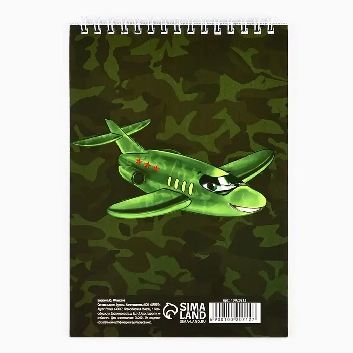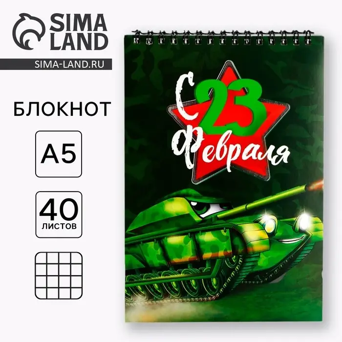 Блокнот А5, 40 листов на гребне, обложка картон «Танк. 23 февраля»