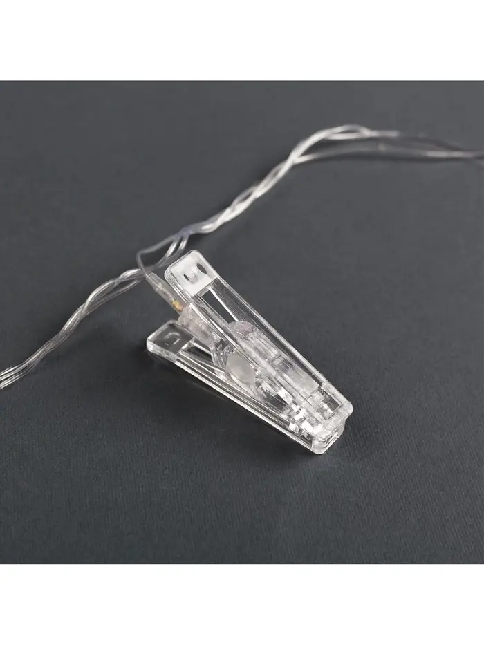 Гирлянда «Нить» 4.5 м с насадками «Прищепки», IP20, прозрачная нить, 20 LED, свечение RG/RB, мигание, 220 В