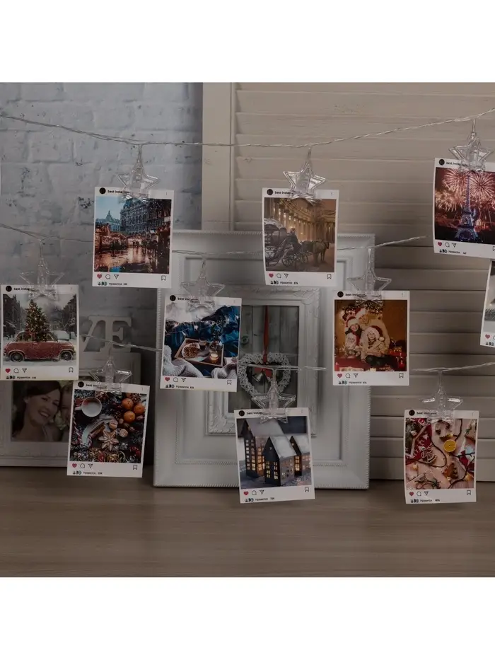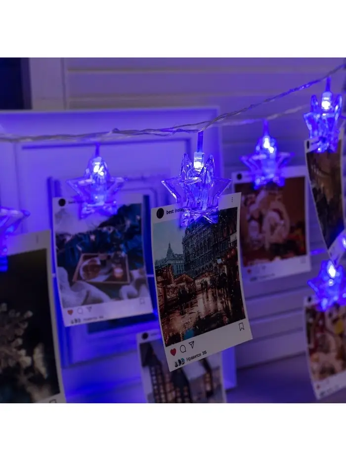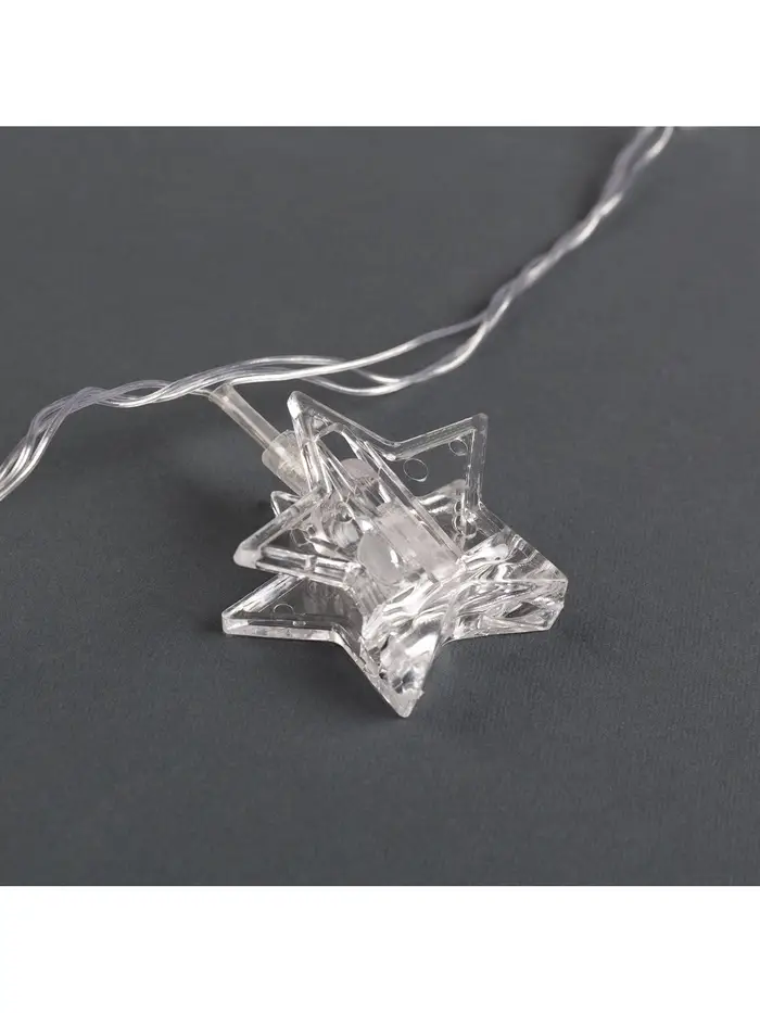 Гирлянда «Нить» 4.5 м с насадками «Прищепки-звёзды», IP20, прозрачная нить, 20 LED, свечение синее, 220 В