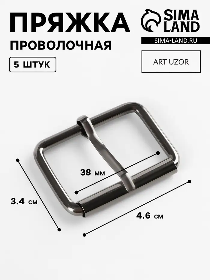 Пряжка проволочная, 4.6×3.4 см, 38 мм, 5 шт., цвет чёрный никель