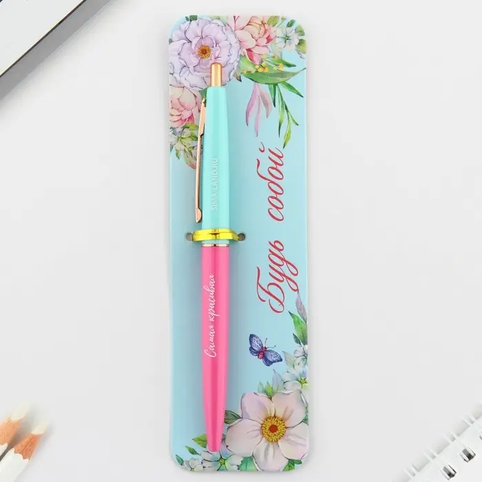 Ручка отличное дополнение к подарку. Яркий дизайн несомненно привлечет внимание и будет выделяться среди других предметов, а удобная форма корпуса позволит использовать ее с комфортом.