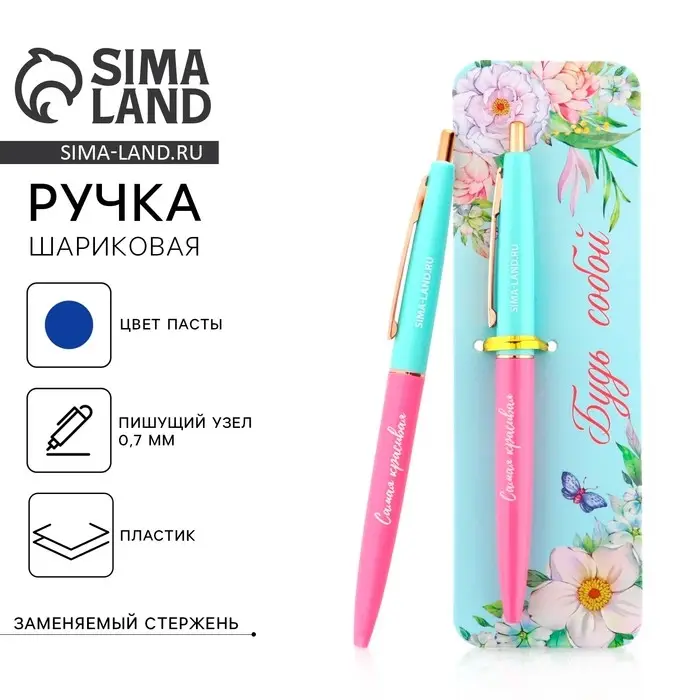 Ручка шариковая, синяя паста, 0.7 мм, автоматическая, пластик «Будь собой»
