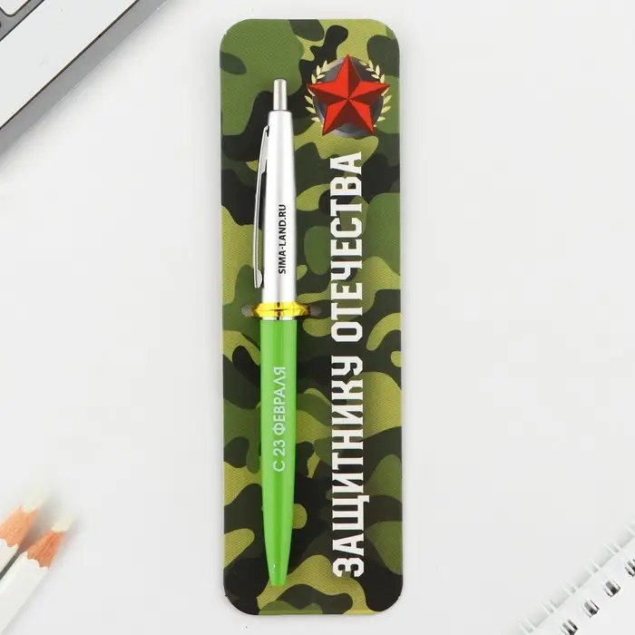 Ручка шариковая, синяя паста автоматическая 0.7 мм пластик «Защитнику отечества. 23 февраля»