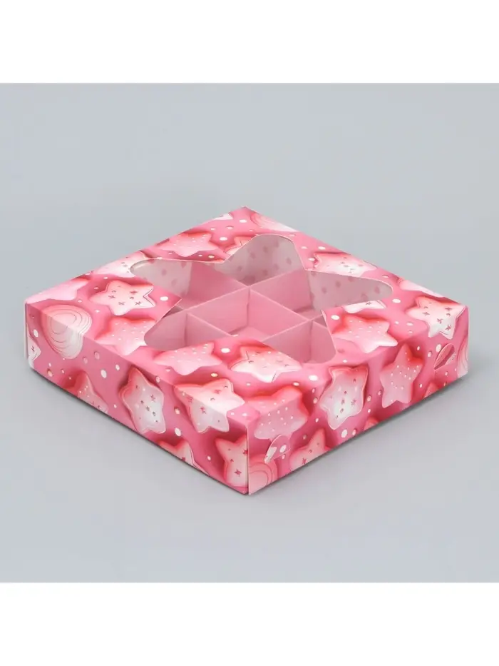 Коробка для конфет, кондитерская упаковка, 9 ячеек, «Сладости», 14.7×14.7×3.5 см