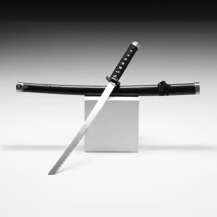 Погрузитесь в мир восточной культуры с этой великолепной сувенирной катаной, которая станет не только стильным элементом вашего интерьера, но и символом силы и грации. Длина 89 см и черный матовый дизайн с искусственной кожей на ножнах придают этому изделию уникальный шарм и элегантность.