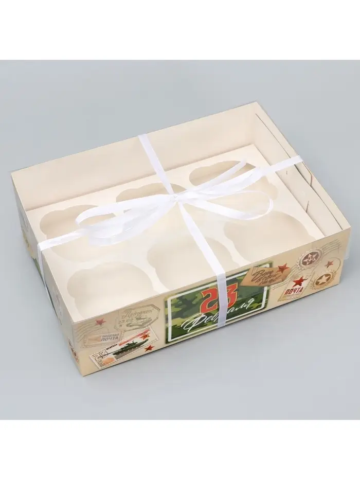 Коробка для капкейка, кондитерская упаковка, 6 ячеек, «23 февраля», 23×16×7.5 см