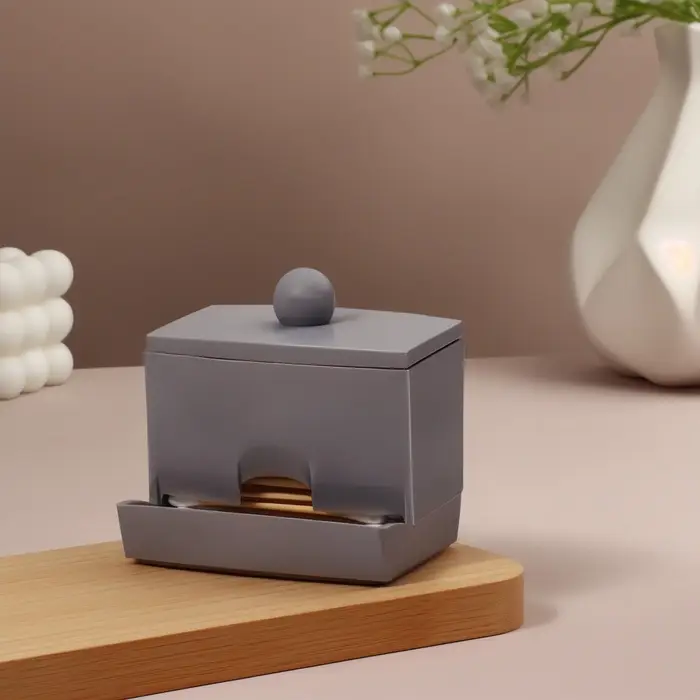 Удобный и стильный аксессуар, который поможет поддерживать порядок в ванной комнате или на туалетном столике. Этот органайзер для хранения ватных палочек с крышкой размером 9 x 6,5 x 7,5 см — идеальное решение для тех, кто ценит порядок и практичность в мелочах.