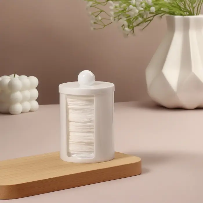 Стильный органайзер для ватных дисков поможет навести порядок среди гигиенических принадлежностей. Изделие отличается удобной боковой прорезью для извлечения дисков. Аксессуар способен вписаться в любой интерьер, сэкономив при этом место в шкафчиках или на вашей тумбочке.