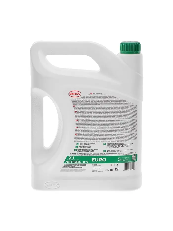 Антифриз Sintec Euro, зелёный, G-11, 5 кг, -40°C