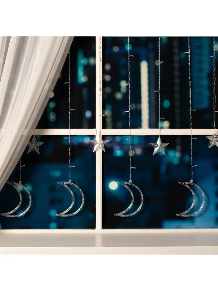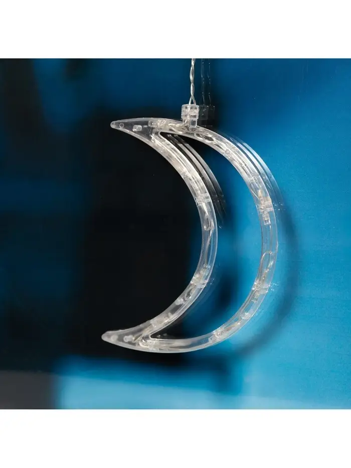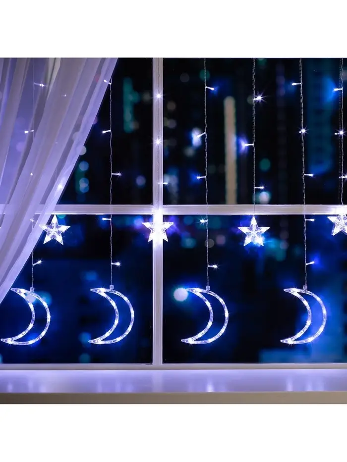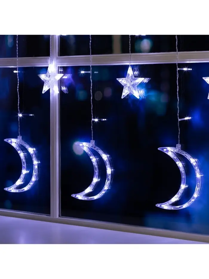 Гирлянда «Бахрома» 2.7×0.9 м с насадками «Месяц», IP20, прозрачная нить, 138 LED, свечение белое, 8 режимов, 220 В