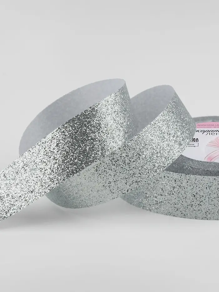 Серебристая блестящая лента — это мгновенный праздник. Добавьте мерцания подаркам, создайте нарядное оформление для свадьбы или детского дня рождения. Полиэстеровая основа делает её прочной и гибкой, а равномерное покрытие блёстками переливается при любом свете.