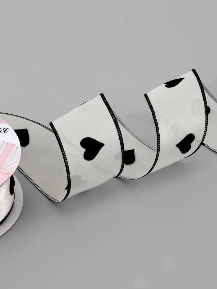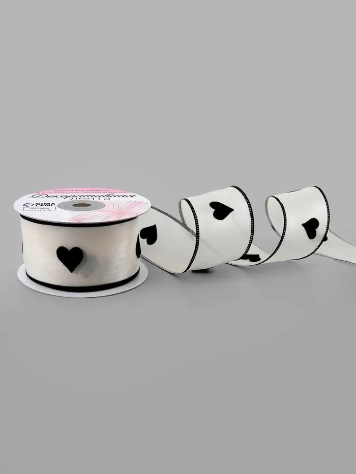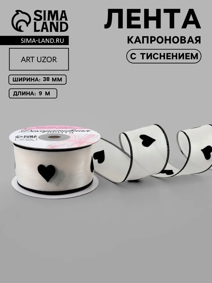 Лента капроновая «Сердечки», с рисунком, 38 мм, 9.1±0.5 м, бежевая, чёрная