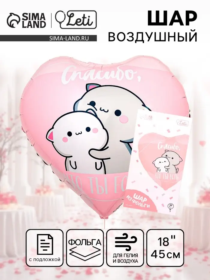 Воздушный шар фольгированный 18" «Спасибо», сердце, с подложкой