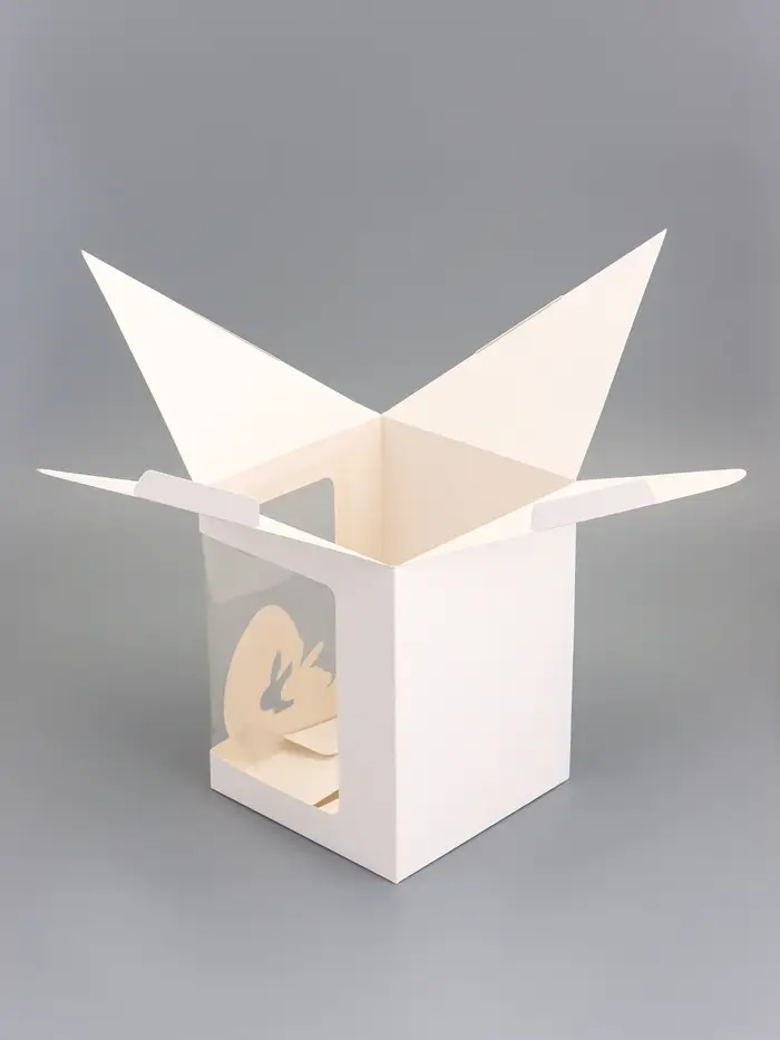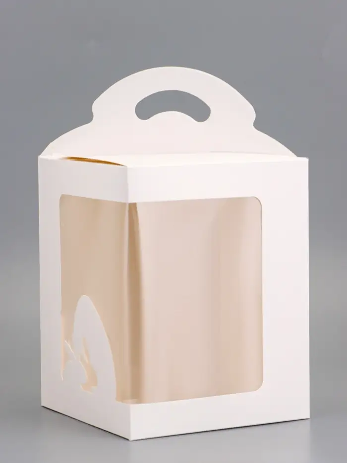 Большая белая коробка для десертов с окном — это упаковка для масштабных и высоких кондитерских изделий. Её внушительные размеры и прозрачная витрина позволяют безопасно транспортировать и эффектно презентовать сложные десерты.