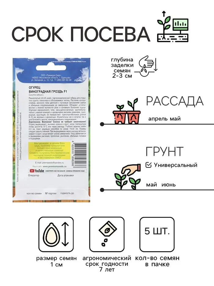Семена Огурец Виноградная гроздь F1 5 шт.