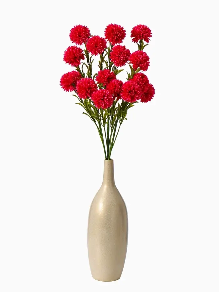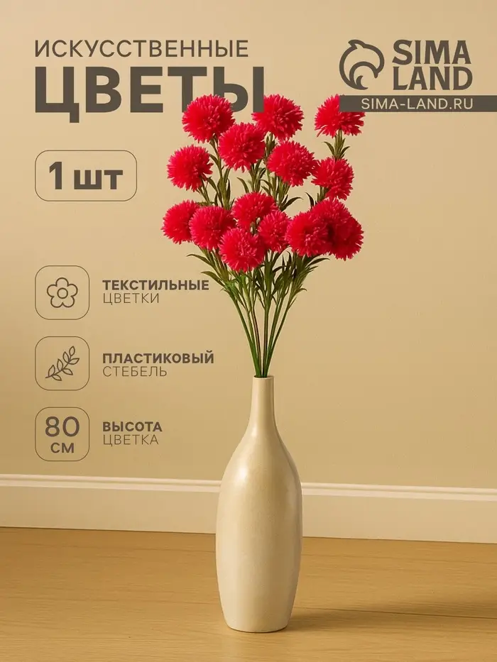Новая высота в оформлении интерьера — искусственная хризантема. Этот цветок отличается насыщенным малиновым оттенком, создающим эффектную фокусную точку в любом помещении. Добавьте яркость и свежесть без ухода за живыми растениями.