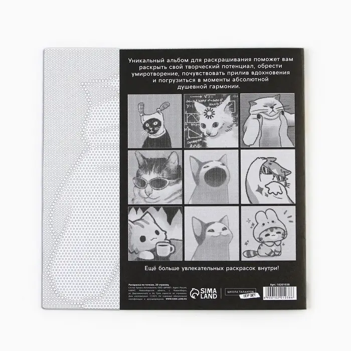 В альбоме вы найдете 20 зашифрованных картинок, размер альбома 21 х 21 см.