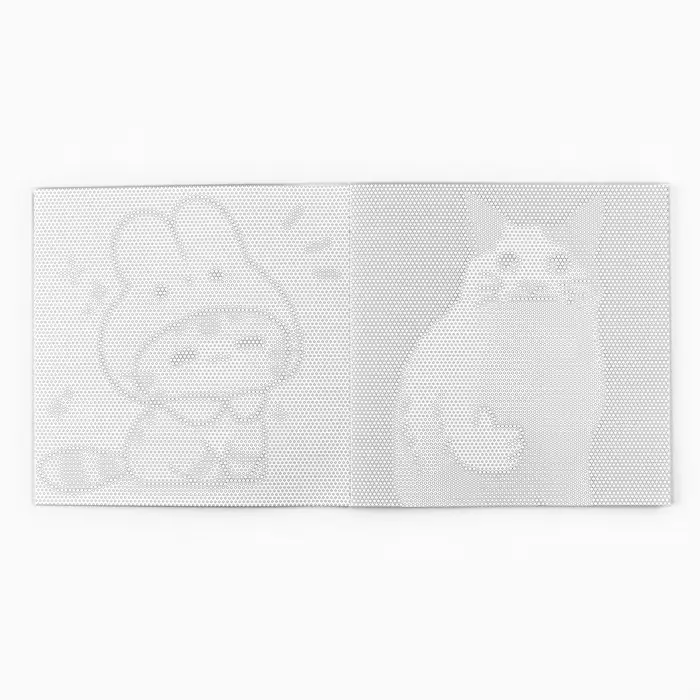 Совершенно новый вариант раскраски-антистресс. На первый взгляд, это набор одинаковых листов, заполненных точками. Но, присмотритесь! Точки отличаются размером, составляя загадочный узор, раскрасив который, вы получите яркое изображение любимого персонажа.