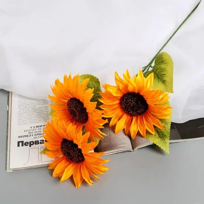 - Экономия времени: не требуют полива, солнечного света или особых условий, искусственные подсолнухи сохраняют свежесть круглый год, освобождая вас от забот по уходу за живыми растениями.