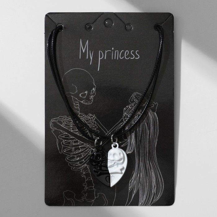 Кулон «Неразлучники» инь ян, скелеты, цвет чёрно-белый, 43 см