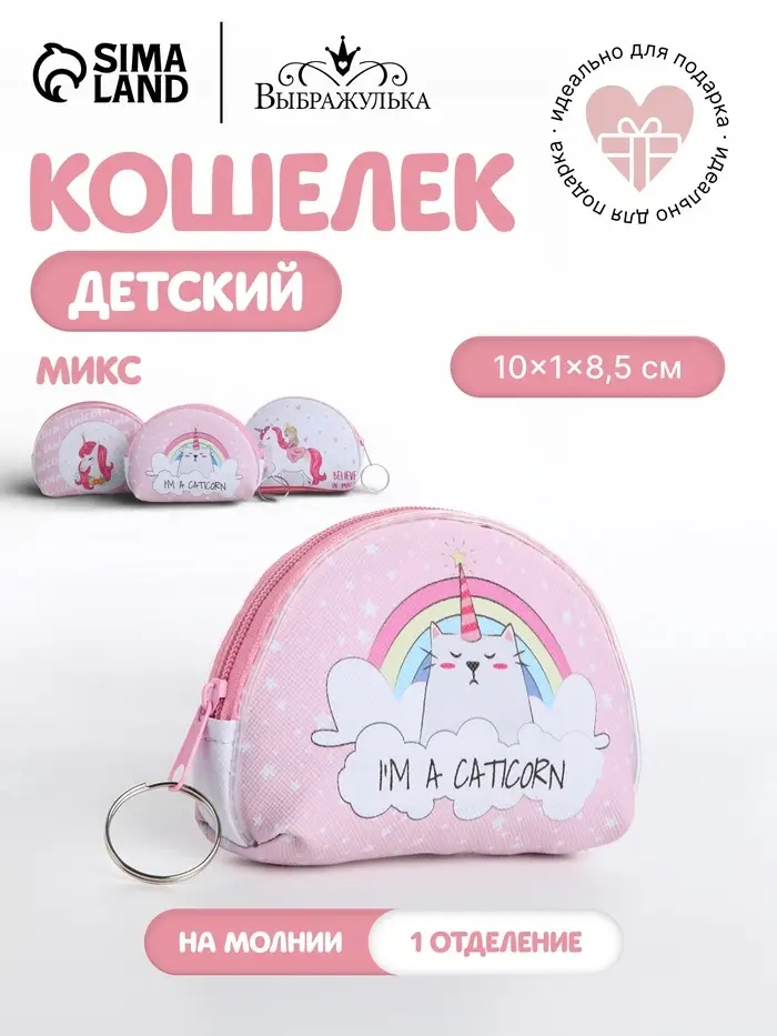 Кошелёк детский «Единорожки» Выбражулька, маленький, монетница, МИКС