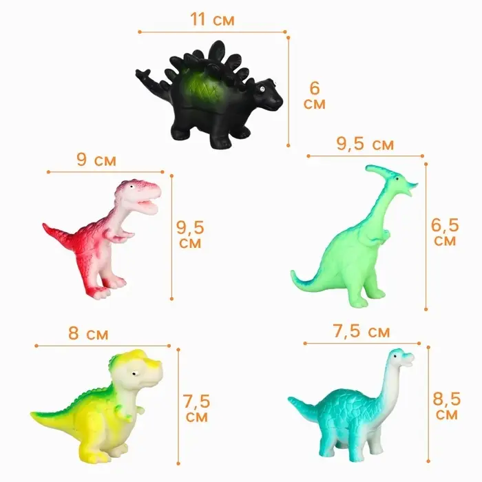 Резиновые игрушки для ванны Крошка Я «Динозаврики», 10 см, с пищалкой, в наборе 5 шт.