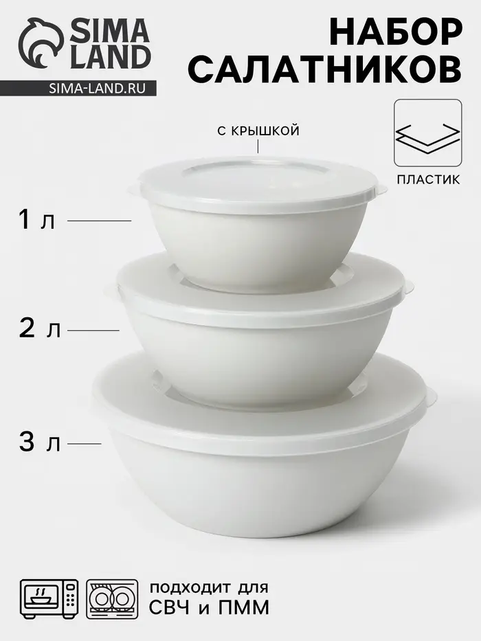 Набор мисок с крышкой HELSINKI, 3 шт.: 1 л, 2 л, 3 л, МИКС