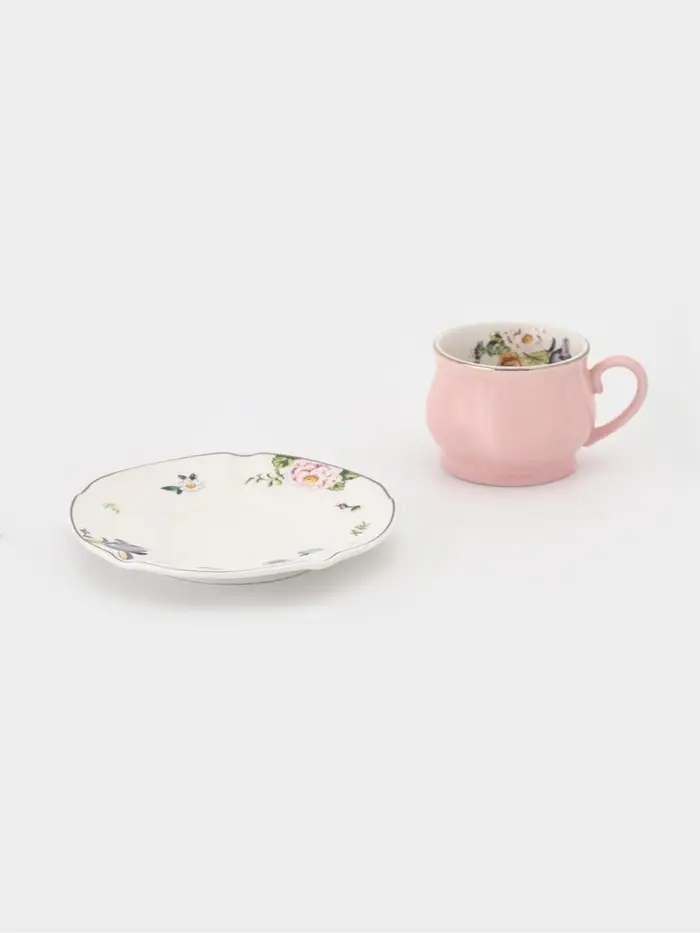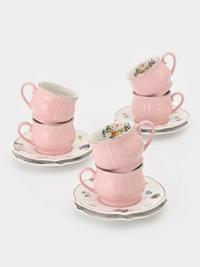 Сервиз кофейный «Сирена», 12 предметов: 6 чашек 100 мл, 6 блюдец 12 см, керамика, розовый