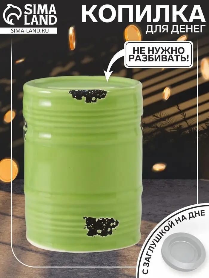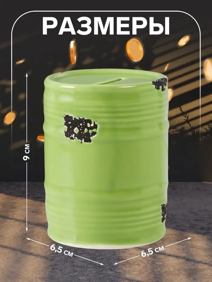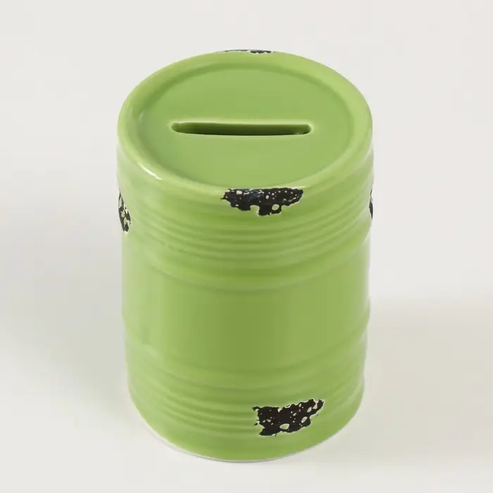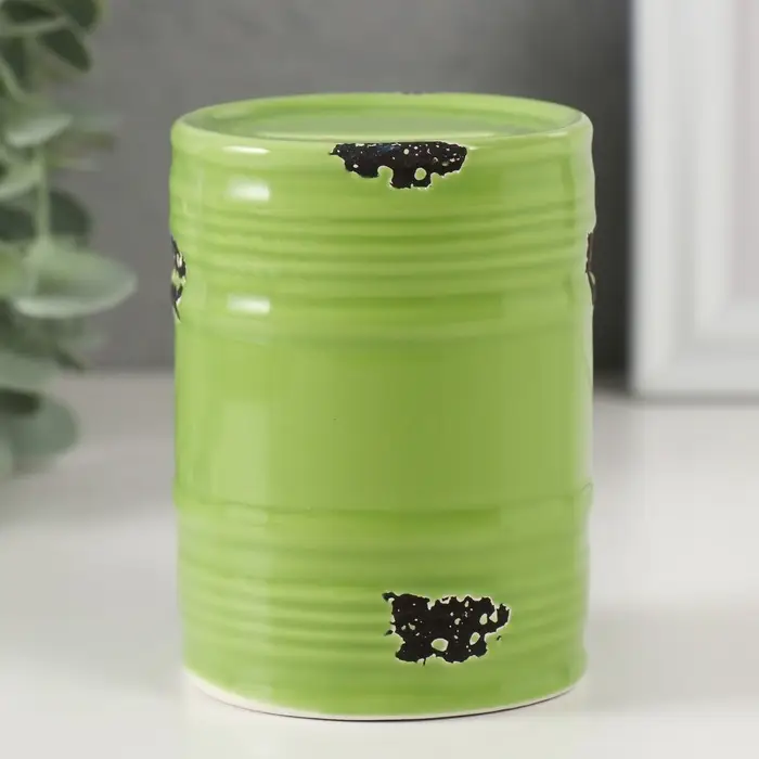 Копилка для денег «Зелёная бочка», керамика, 6.5×6.5×9 см