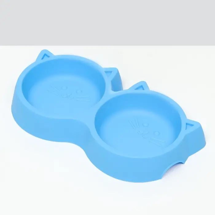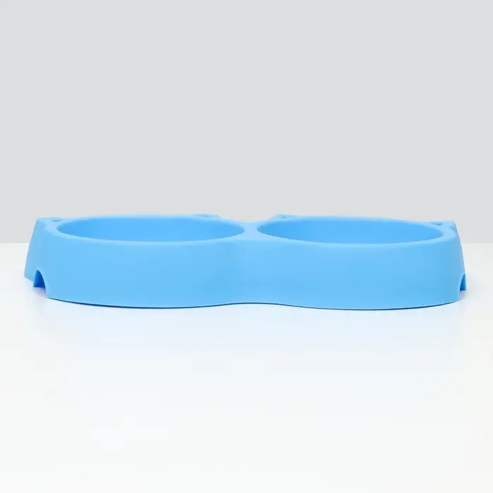 Миска двойная «Кошка», 25×13×3.5 см, с прорезиненными ножками, пластик, синяя