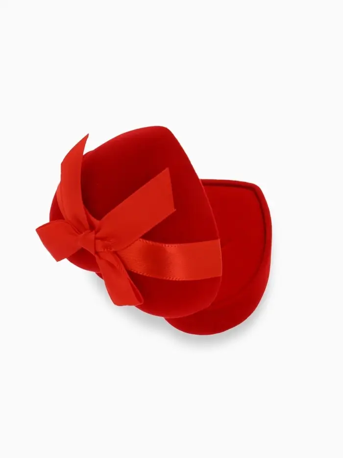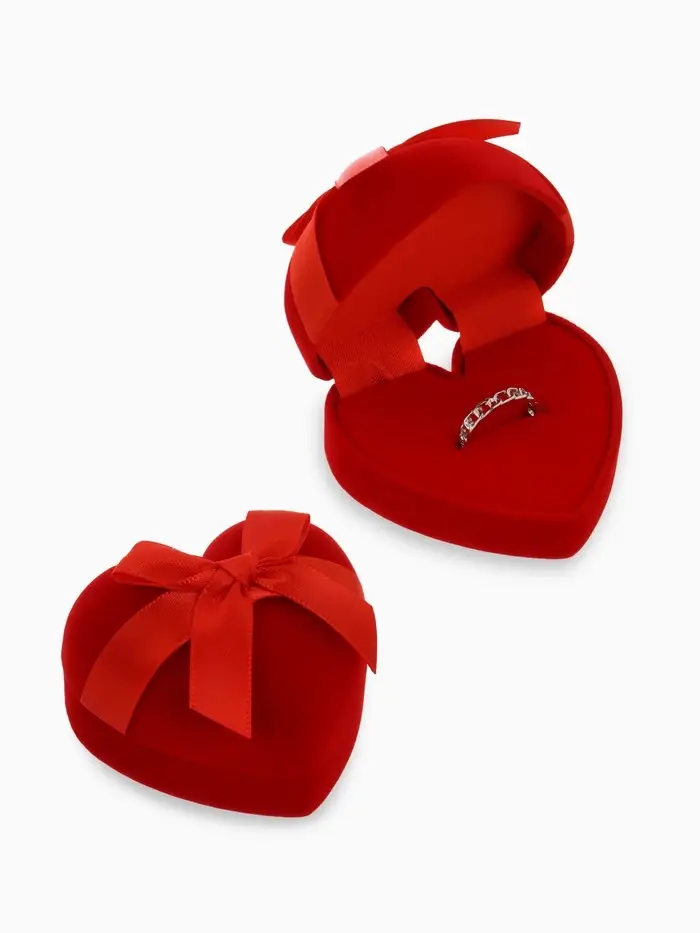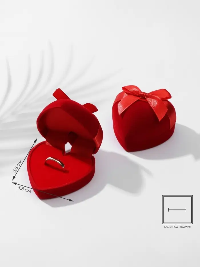 Футляр бархатный под серьги/кольцо «Сердце» с лентой, 6.2×6,2, цвет красный