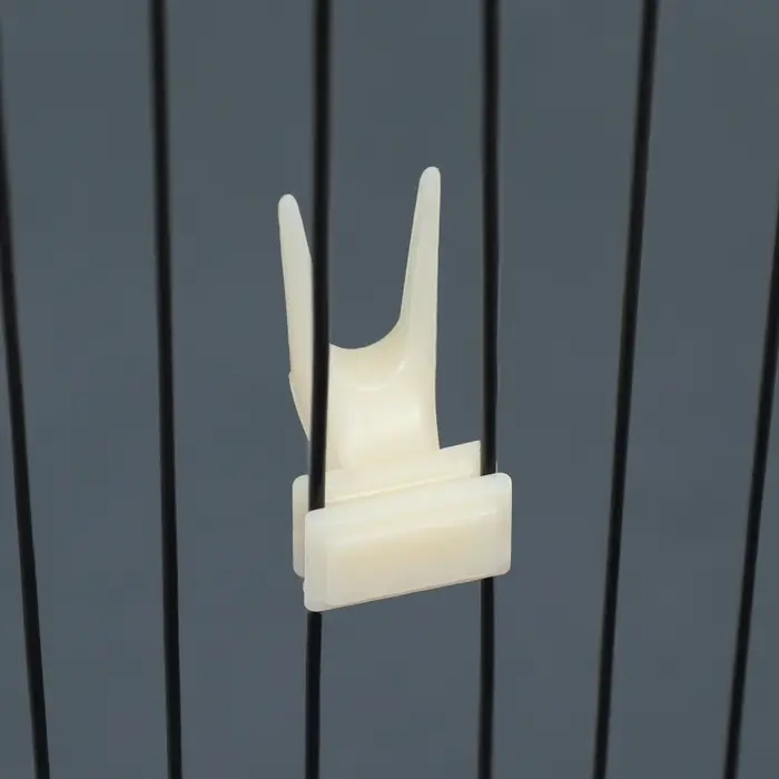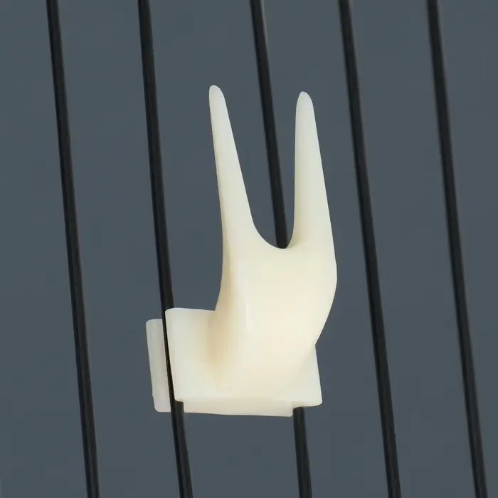 - Удобное крепление на прутья: Специальный держатель надежно фиксирует вилку на решетке клетки. Это позволяет закрепить лакомство на удобной для птицы высоте. Конструкция прочно удерживает даже крупные кусочки фруктов.