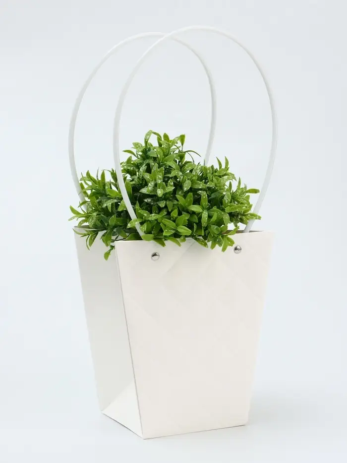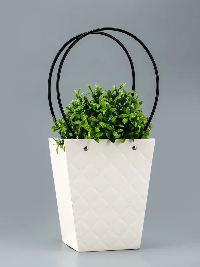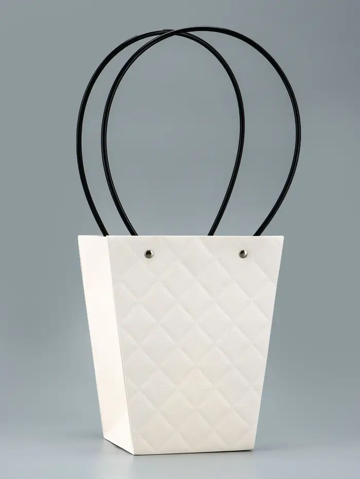 Элегантная водостойкая сумка для цветов — идеальное решение для стильной и удобной упаковки букетов и композиций. Изготовлена из плотного влагостойкого картона, надежно защищает цветы от влаги и деформации. Удобные длинные ручки позволяют легко переносить композицию.