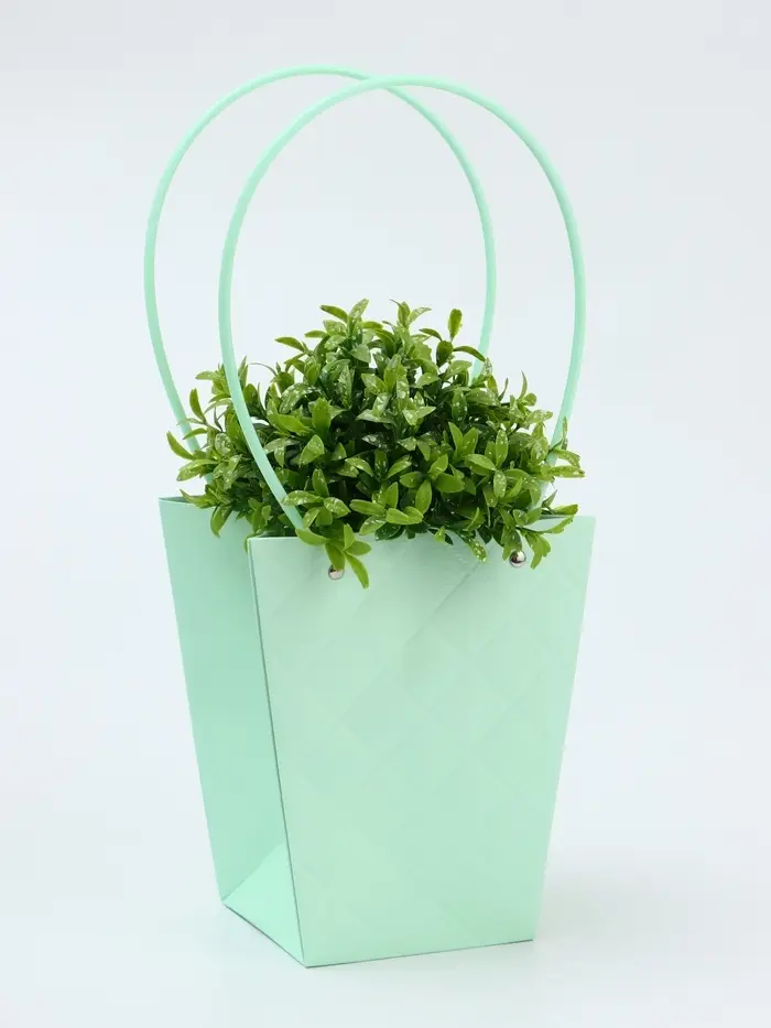 Сумка для цветов тиснение мята влагостойкая, 12×12 - 8×8 - 12.5 см