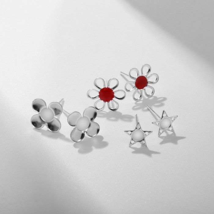 Пусеты в коробке 36 пар «Рисунки» трио, цвет МИКС в серебре