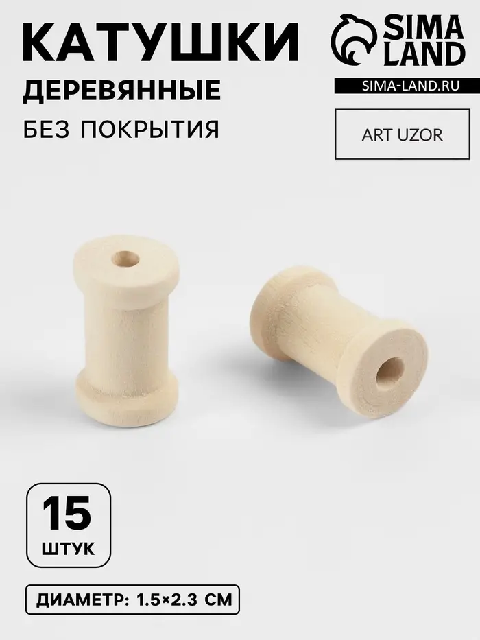 Набор деревянных катушек без покрытия, 15 шт., d=1.5×2.3 см