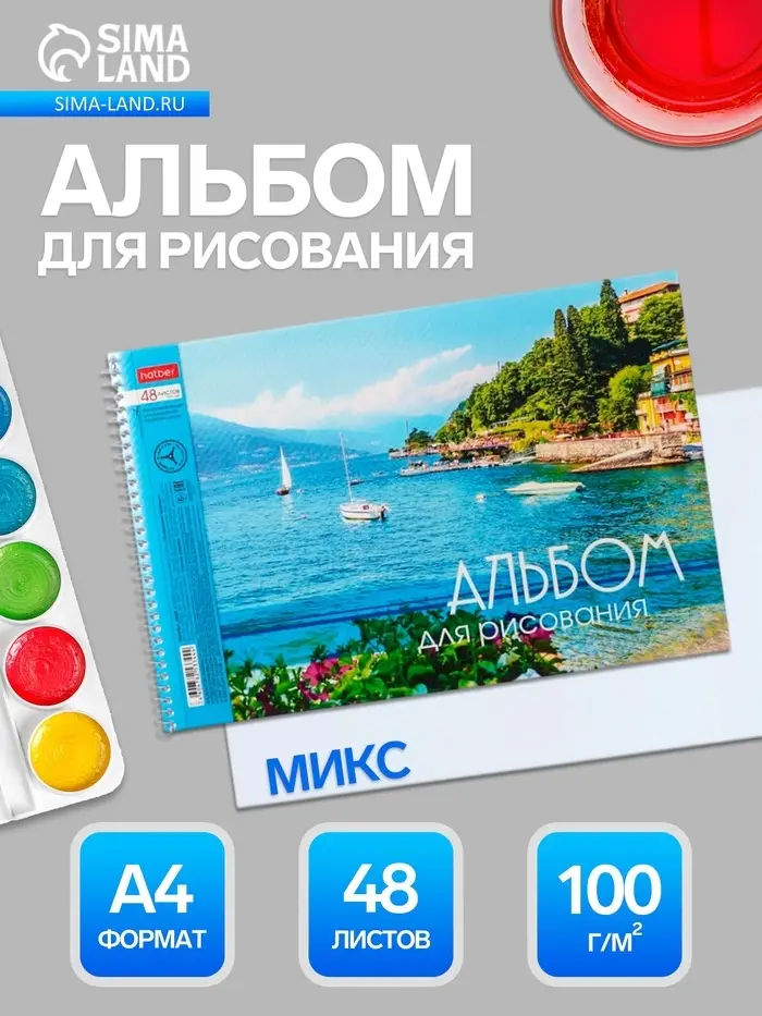 - 48 листов обеспечивают простор для регулярных занятий и экспериментов с разными материалами.