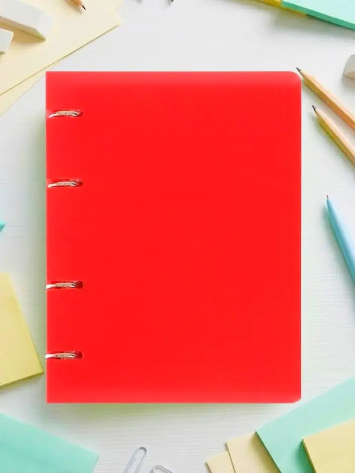 Эта красная тетрадь на кольцах создана для тех, чьи мысли требуют больше места. Вместительный блок на 120 листов вмещает несколько месяцев записей, лекций или проектов. Компактный формат А5 легко помещается в сумку, а прочная пластиковая обложка надежно защищает ваши заметки от повреждений.