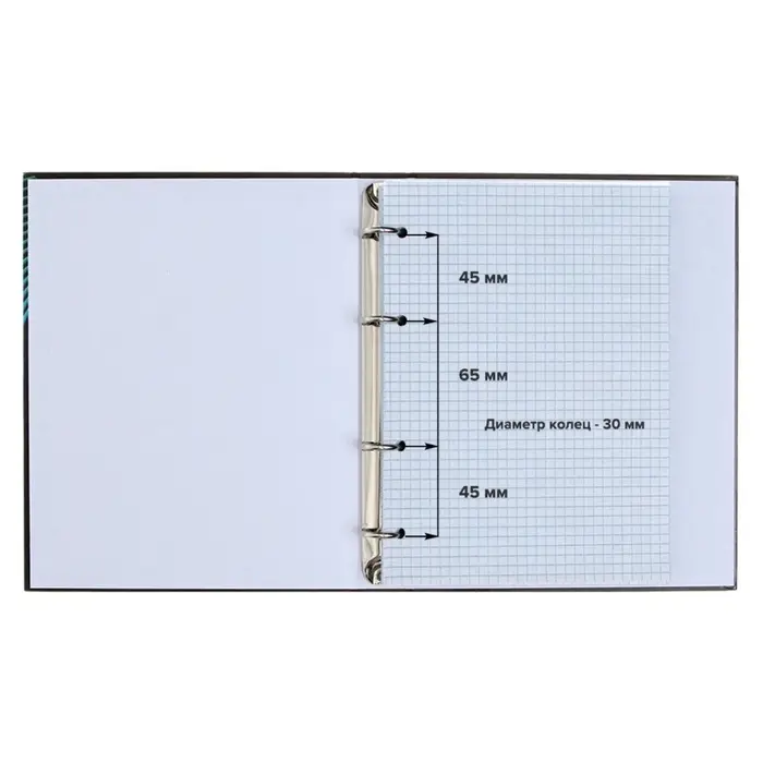- Кольцевой механизм обеспечивает полное раскрытие страниц без перегибов.