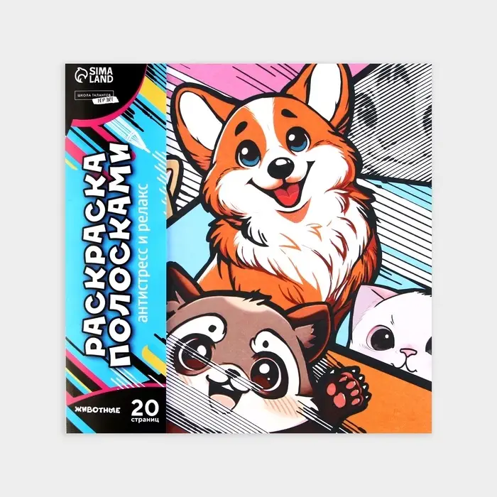 Раскраска-антистресс по полоскам «Яркие животные», 21×21 см