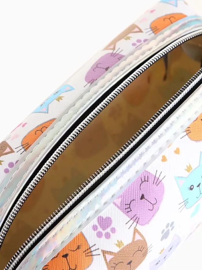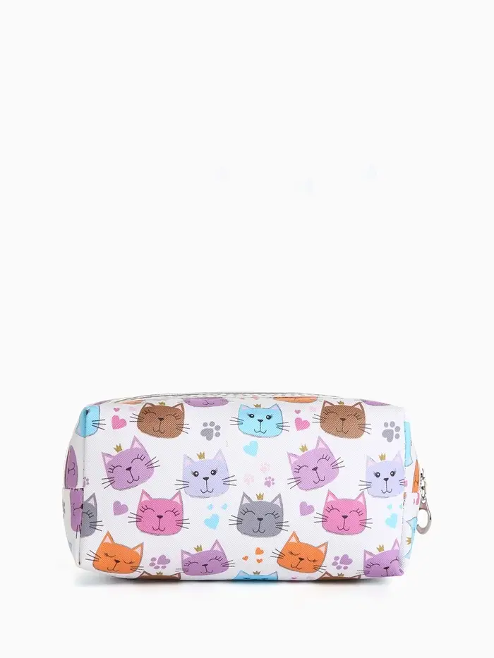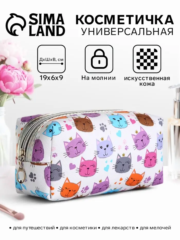 Косметичка женская на молнии объёмная, маленькая, с принтом, белая