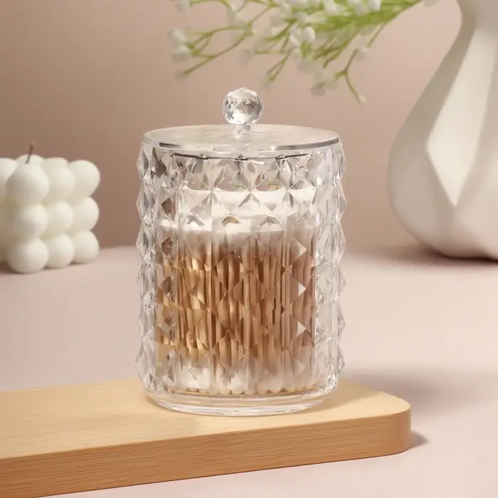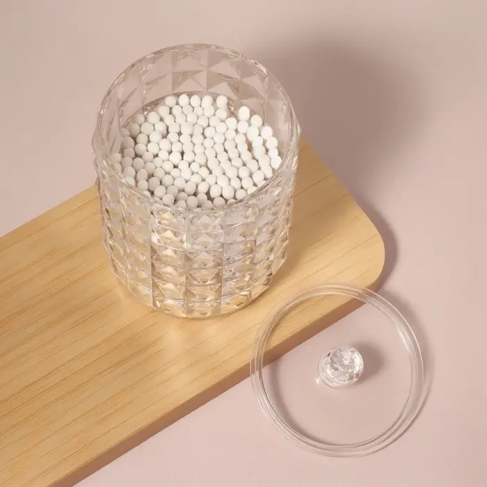 - Практичность: крышка защищает содержимое от пыли и влаги, поддерживая чистоту ватных палочек.